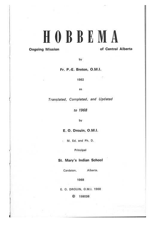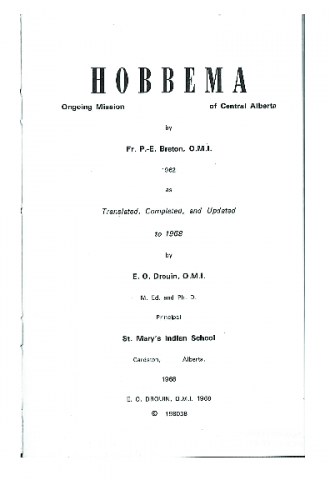 A brief history of Maskwaciy (formerly known as Hobbema) written by a Catholic priest from the local mission. Originally written in French, this is an English translation. It includes details on the Erminksin family, including Jean-Baptiste Piche Ermineskin's arrival from Eastern Canada into the Canadian prairies.