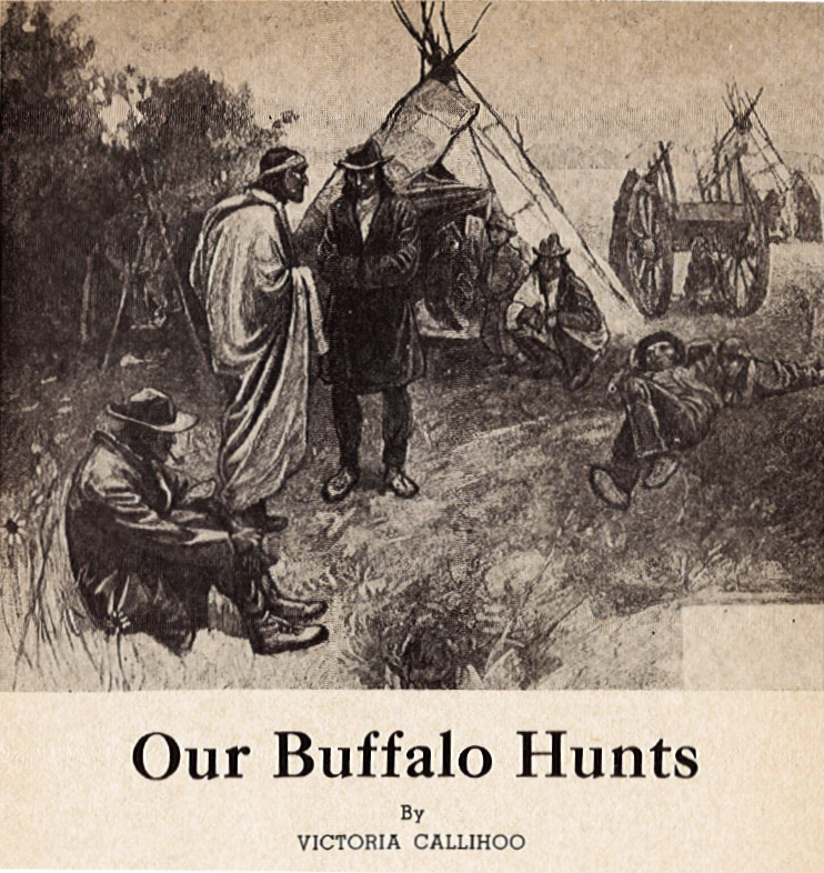 A recollection of the Métis buffalo hunts from Victoria Callihoo (1861-1966). The story was originally printed in the Winter 1960 issue of Alberta Historical Review, Volume 8, Number 1. This story is significant because it is a first hand account of one of the last great buffalo hunts in Western Canada. Once the mainstay of the Métis lifestyle and economy, by the late 19th century the prairie herds had all been wiped out, forcing the Métis to adapt an agricultural lifestyle. Victoria Callihoo herself was a noted Métis historian who lived to be 105 years old. Here follows a brief biography from Library and Archives Canada: