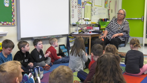 Kindergarten students learn about family through Elder Theresa Strawberry's storiesDescription: